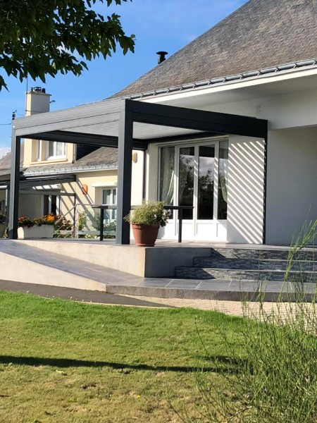 Pergola bioclimatique à Saint-Géréon pour un couple souhaitant de l'ombrage sur leur terrasse